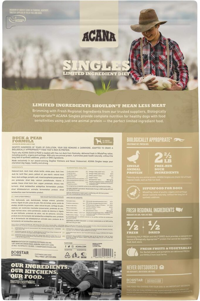 Acana Singles Duck and Pear Dog Food, 4.5 Pounds