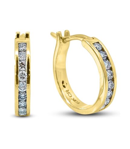 10K Gold Canadian Diamonds Channel-Set Huggie Hoop Earrings (H-I Color, SI1-SI2 Clarity) by POLAR LIGHT – Choice of Metal Colors