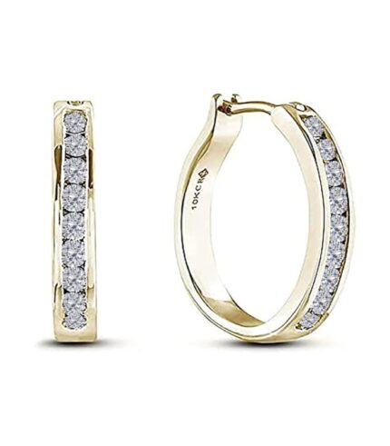 10K Gold Canadian Diamonds Channel-Set Huggie Hoop Earrings (H-I Color, SI1-SI2 Clarity) by POLAR LIGHT – Choice of Metal Colors